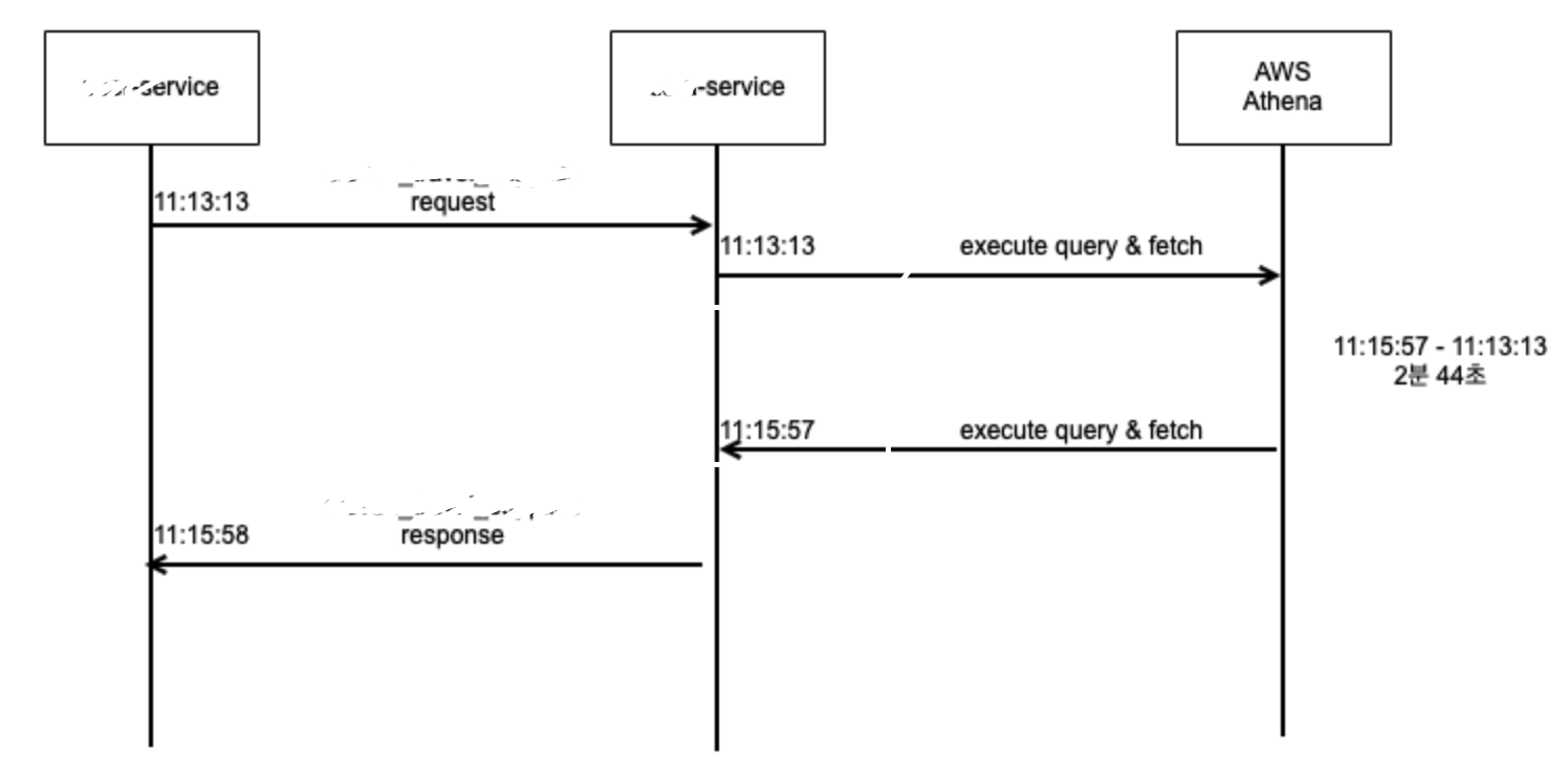 <개요> - 다음과 같이 Service #A 에서 Service #B로 데이터 조회 API를 요청하고 값을 받아오는 로직이 있다. - Service #B에서는 AWS Athena를 저장소로 사용하고 있으며 Athena JDBC42 드라이버를 사용 중 이다.