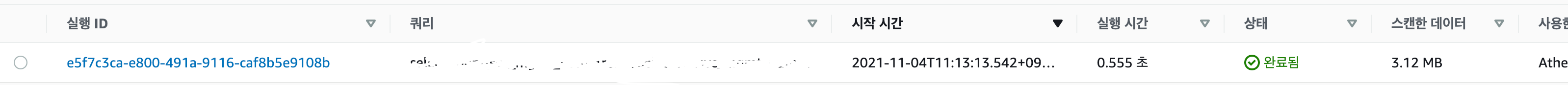 - Athena 의 경우 동시에 다수의 쿼리가 수행되면 Queue에 의하여 순차적으로 수행될 수 있기 때문에 쿼리 히스토리를 조회하였다.